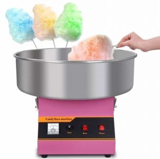 制造棉花糖需要兩樣關鍵的東西,一是高速旋轉的、四周開有小孔的容器,二是加熱后融化的糖漿。融化的糖漿從小孔中甩出后,被拉伸成細細的糖絲,遇到較冷的空氣迅速冷凝固化,凝固的糖絲糾纏在一起,就形成了棉絮一樣的棉花糖。
