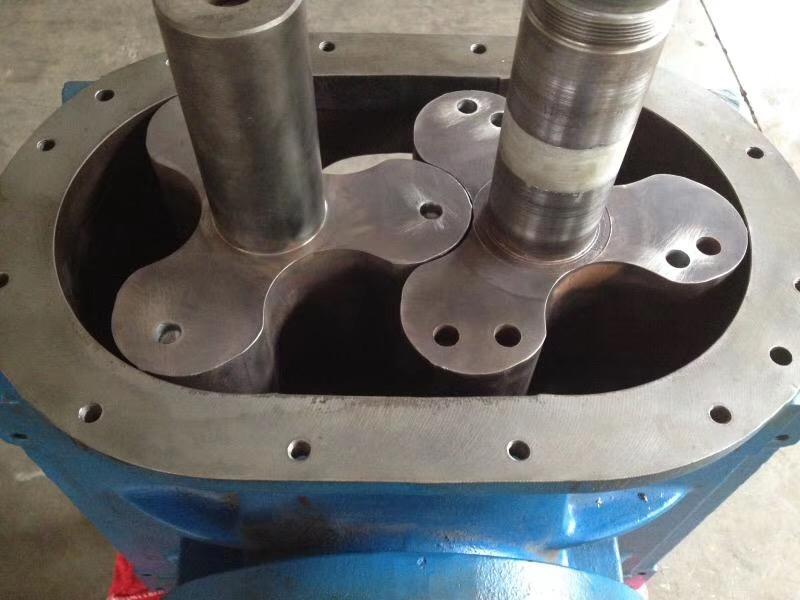 羅茨鼓風機的機殼進排氣口遮壁線形成螺旋式結構,與葉輪頂部的直線構成三角形進排氣口,隨葉輪的旋轉而循序開閉,運行噪聲極低,且沒有排氣脈動現象。羅茨鼓風機葉輪為兩葉直線型,葉輪之間只要確保側面間隙即可,與同樣尺寸的傳統鼓風機相比,具有效率高的特點。葉輪采取特殊外形,便于保持葉輪間的相互間隙,密封性能大大改善,使效率進一步提高。